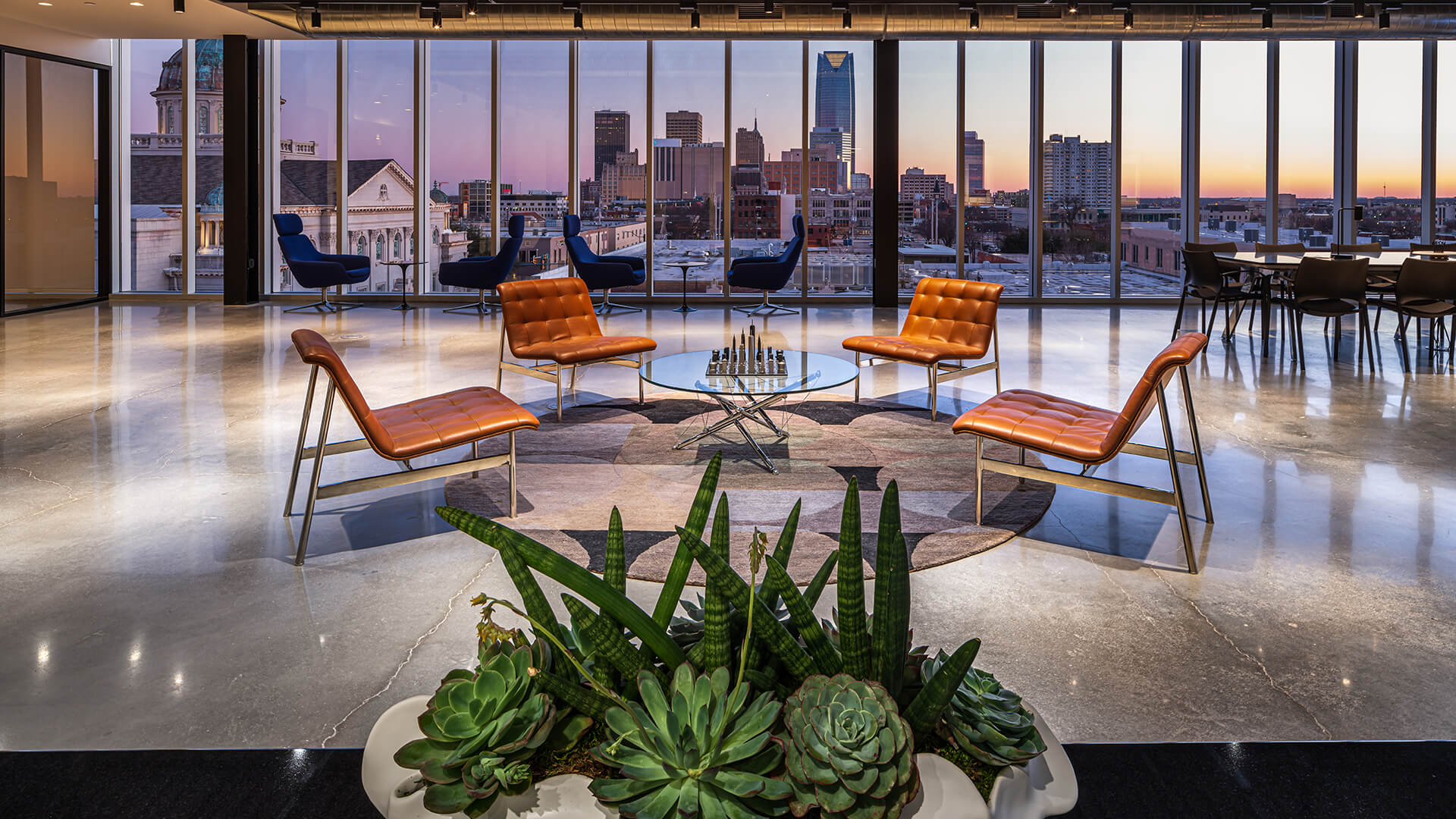 The Sky Gallery is as sleek as it is rare: an ultra-modern gallery-style space overlooking the dynamic Oklahoma City skyline, featuring high-end furniture, a full bar and custom built-ins. No surprise it’s regularly booked for one-of-a-kind shoots, from a British reality show to high-profile interviews with changemakers and tastemakers.