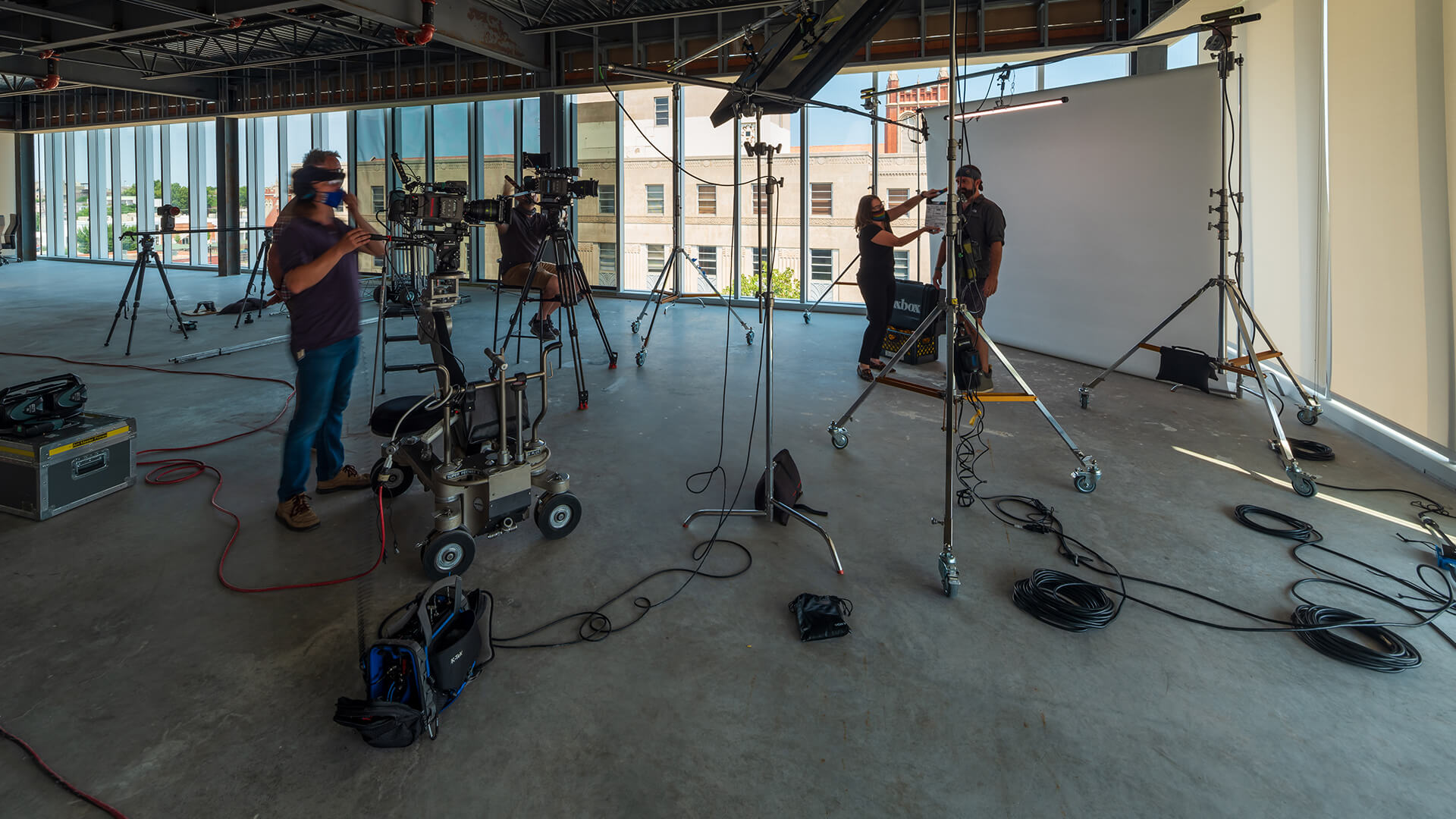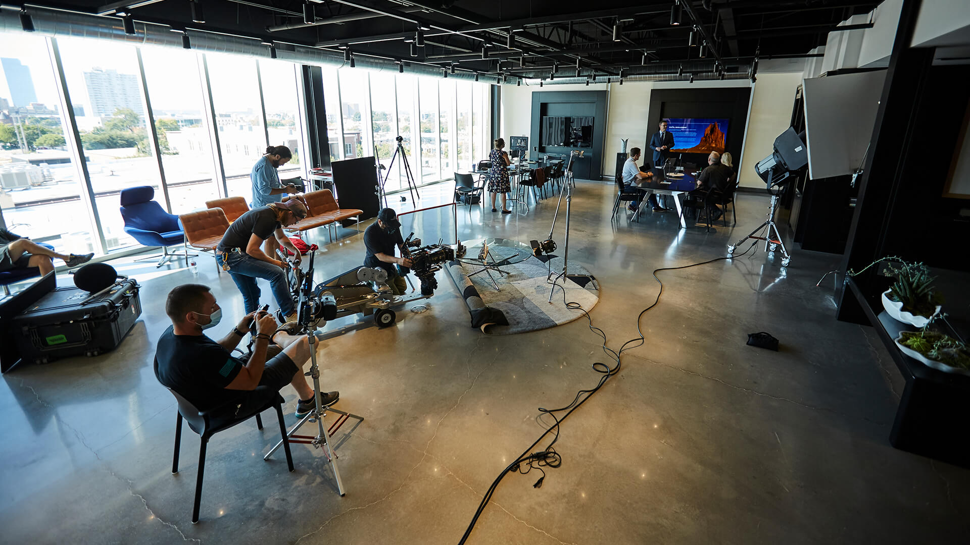 This is our premier studio — the large flexible space is well-suited for creating customized sets and accommodating a variety of production types.